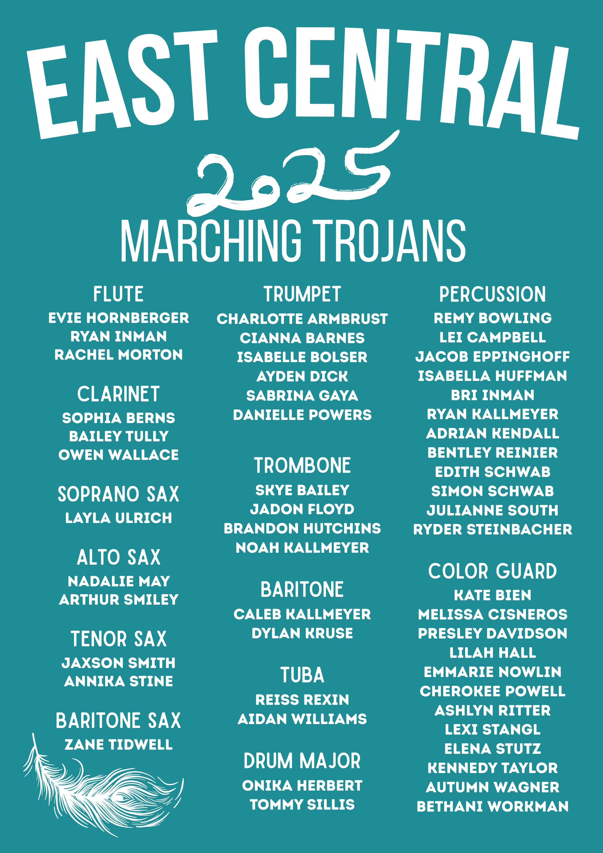 All EC Marching Trojan orders will be delivered to the school and given to your student, unless alternate arrangements are made via email.